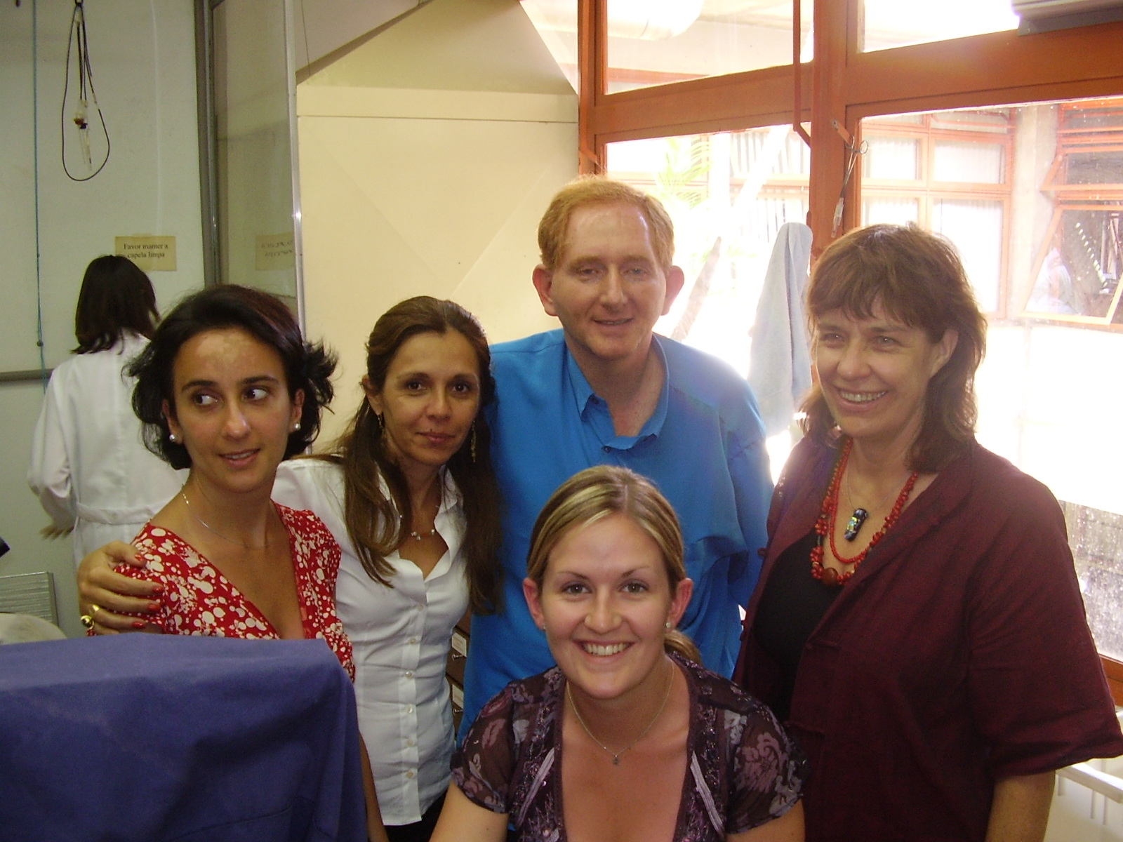 Brasil - nos dias 8 e 9 de novembro de 2006 a Prof.Dra Miranda Grounds, professora da University of Western Australia, esteve na Unicamp a convite da Prof. Dr. Maria Julia Marques. Miranda estava acompanhada de duas outras pesquisadoras da sua Universidade: Thea Shavlakadze and Hannah Radley. As três proferiram palestras sobre as suas linhas de pesquisa relacionadas a inibição do fator de necrose tumoral (TNF) e aumento da expressão do mIgf-1 em camundongos com distrofia muscular. Elas apresentaram as informações mais recentes das pesquisas, algumas em vias de publicação. Nos estudos experimentais a inibição do TNF com anticorpos monoclonais reduziu significantemente a necrose dos músculos, indicando ser possível a sua utilização para reduzir o dano muscular nas distrofia muscular de Duchenne; os anticorpos monoclonais anti-TNF estão disponíveis hoje para tratamento de doenças inflamatórias como a doença de Chron, artrite reumatóide e psoríase. Estando eu presente nas palestras e na parte inicial da visita a Unicamp eu questionei o porque da demora para que os estudos bem sucedidos em camundongos fossem transpostos para os testes clínicos em humanos. Miranda acredita que estudos clínicos, bem controlados com os inibidores de TNF já deveriam ter sido iniciados. Miranda, Thea e Hannah se mostraram bastante colaborativas, respondendo a todos os questionamentos e mostraram bastante disposição de auxiliar os centros de pesquisas brasileiros. Segue abaixo uma foto das pesquisadoras no dia da visita na Unicamp - na ordem: Thea, Alzira Carvalho (neurologista e patologista neuromuscular brasileira), David, Miranda e Hannah (abaixada).